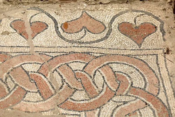 Old roman mosaic floor. Butrint is famous Albanian archaeological center protected under UNESCO as a World Heritage Site. Ancient rotonda is baptist cathedral.