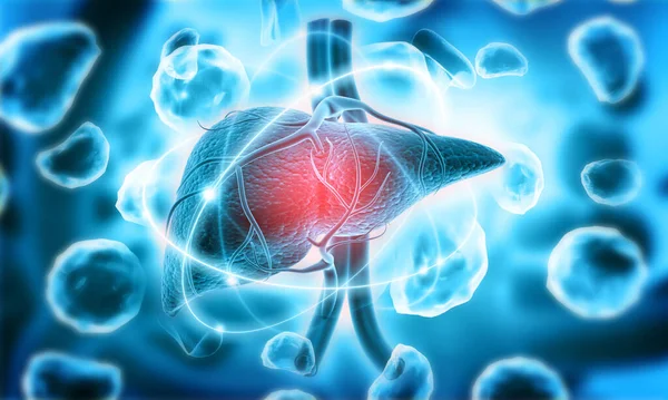 Human liver anatomy on scientific background. 3d illustration