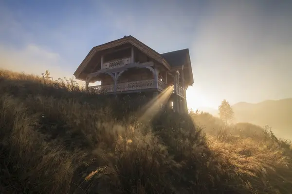 Old house in the mountains at dawn