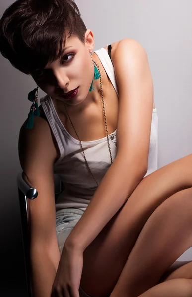 Modern Woman with Short Haircut Bob sitting