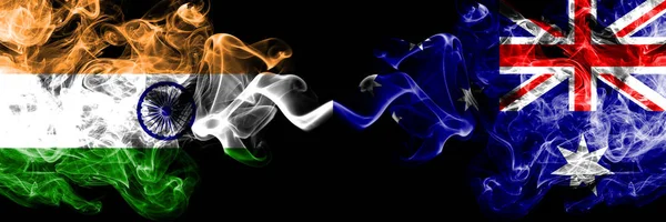 India vs Australia, Australian smoke flags placed side by side. Thick colored silky smoke flags of Indian and Australia, Australian