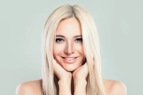 Blonde Model Woman with Healthy Skin and Blonde Hairstyle. Cute