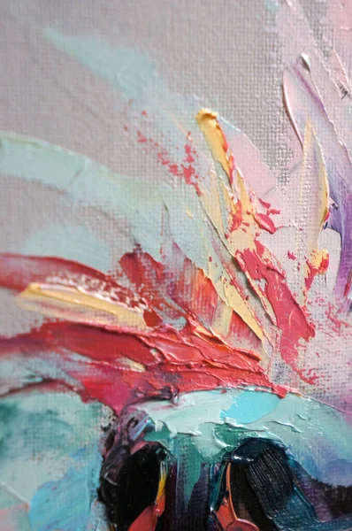 oil paint on canvas is written by palette knife. Closeup of a painting by oil and palette knife on canvas.