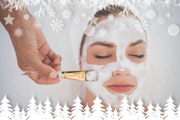 "Beautiful blonde getting a facial treatment"