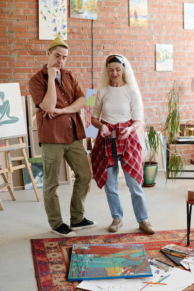 A Man and a Woman Standing Next to Each Other in an Art Studio