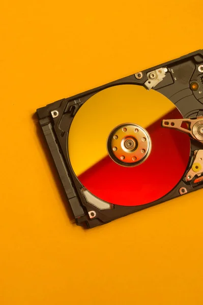 Colorful hdd. open hard disk drive. The concept of data storage. data array. hard drive from the computer. hdd with mirror effect. copy space