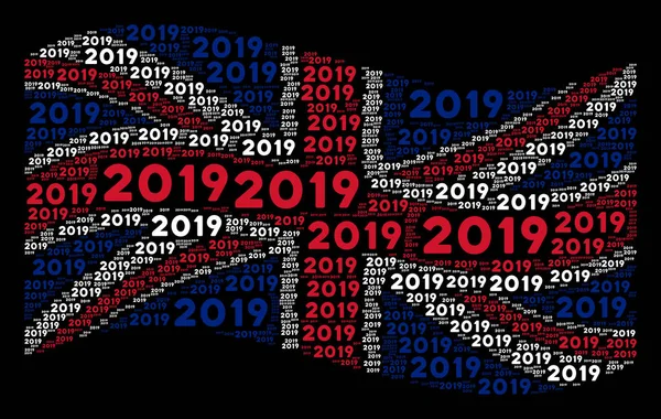 Waving Great Britain Flag Mosaic of 2019 Year Text Items