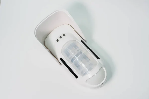 Security and fire sensors and alarm equipment on white background. components for signaling.Security and fire sensors and alarm equipment on white background. components for signaling.