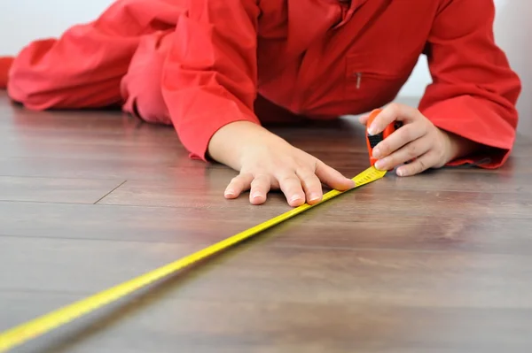 Real architect taking measures while planing house renovation