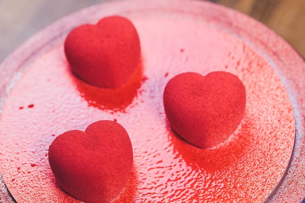Confectioner decorates the cake with velour using the spray gun.