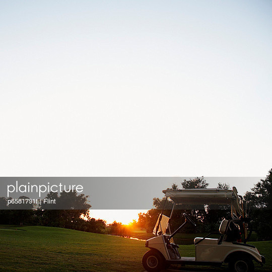 Cart on Golf Course at Sunset