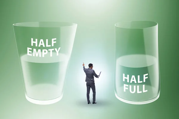 Businessman in the half empty half full glass concept