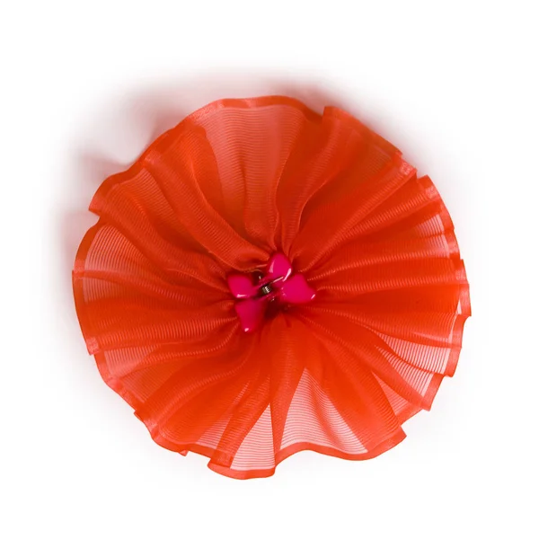 Beautiful and diverse subject. Beautiful and original look and background on an interesting red tulle and organza bow on a white isolated background.