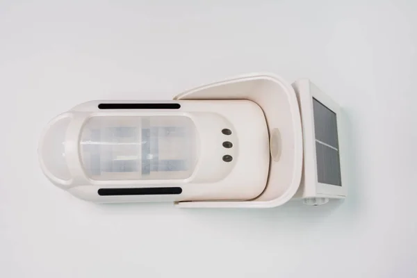 Security and fire sensors and alarm equipment on white background. components for signaling.Security and fire sensors and alarm equipment on white background. components for signaling.