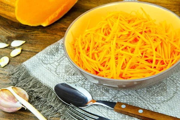 Pumpkin salad, salt, sugar, onion, garlic, vegetable oil, balsam