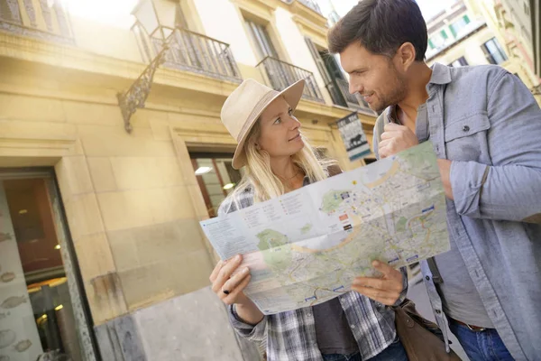 Couple of tourists in the street of european city