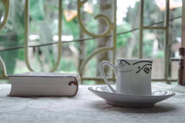 A cup of coffee and a book on window sunlight in morning. Time to finish a novel to discover something new during social distancing period. Stay home Holiday leisure and Healthy lifestyle background.