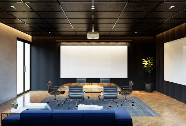 Modern conference interior and screens on the wall. The concept of workplace and enterprise. 3d Rendering illustration