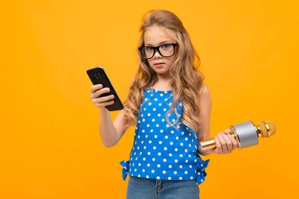 little girl with phone and microphone