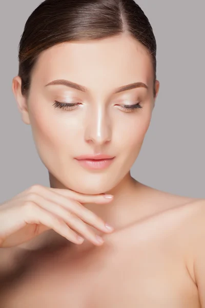 Fashion woman with beautiful face - isolated on white. Skin care concept.