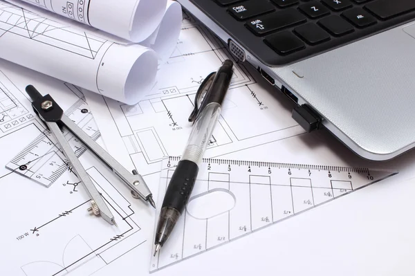 Electrical diagrams, accessories for drawing and laptop