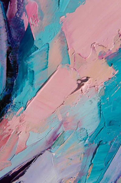 Oil paint on canvas is written by palette knife. Closeup of a painting by oil and palette knife on canvas.