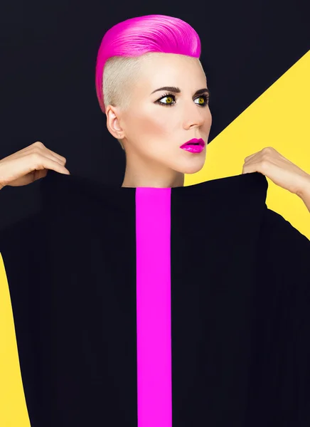 Exclusive fashion photo. model with trendy hairstyle. colored ha