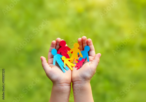 Child?s Hands Holding Paper People Representing Teamwork, Unity in Diversity, and Promoting Positive Community Connections