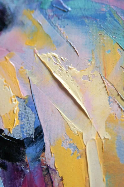 oil paint on canvas is written by palette knife. Closeup of a painting by oil and palette knife on canvas.