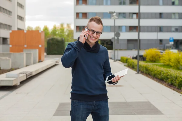 Stylish man with tablet and mobile phone