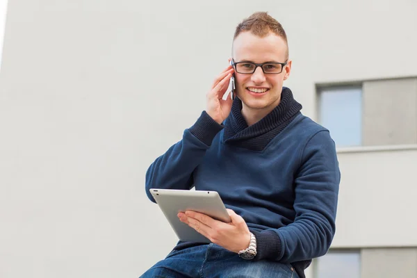 Stylish man with tablet and mobile phone