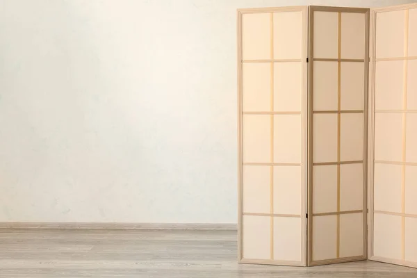 Stylish folding screen near wall in room interior