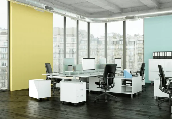 modern large office interior Desing 3d Rendering