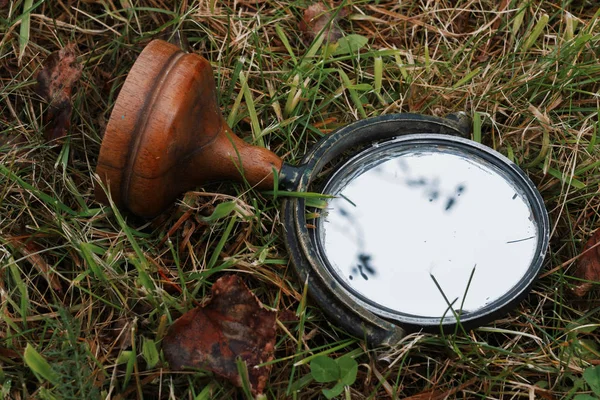 An old mirror on the grass