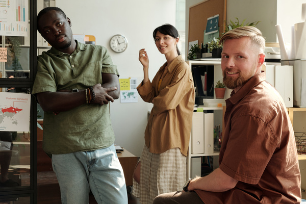 A Man Is next to a Colleague and in the Background the Woman Is Standing Sideways