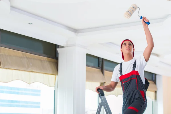 Young painter painting the ceiling in construction concept