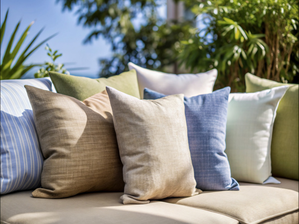 A Bunch of Pillows Sitting on Top of a Couch in the Sun