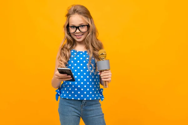little girl with phone and microphone
