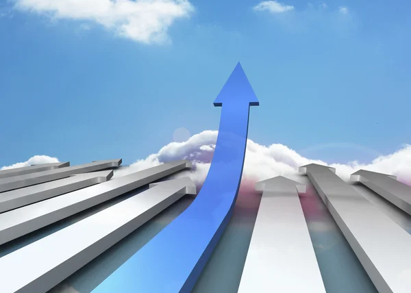 Blue and grey curved arrows pointing against sky