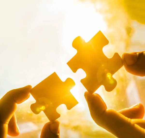 hands trying to connect puzzle pieces