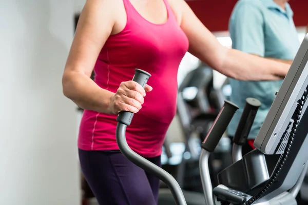Elderly woman training on cross trainer