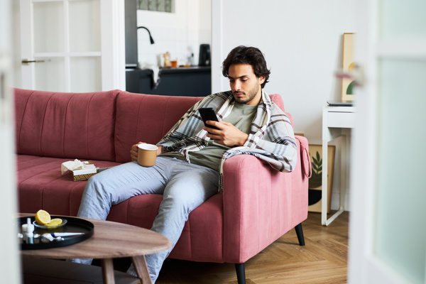 A Man Who Has a Cold Uses a Phone