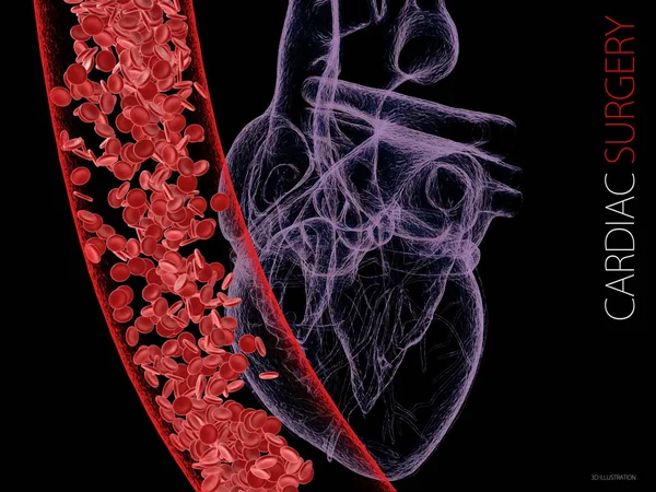 human heart and vein with blood cells. polygonal graphics. 3d Illustration.