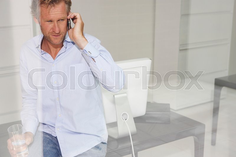 Man in office on phone.