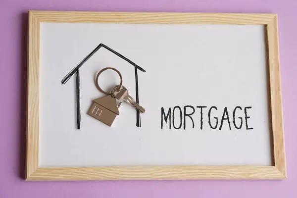 mortgage word with key and house key ring